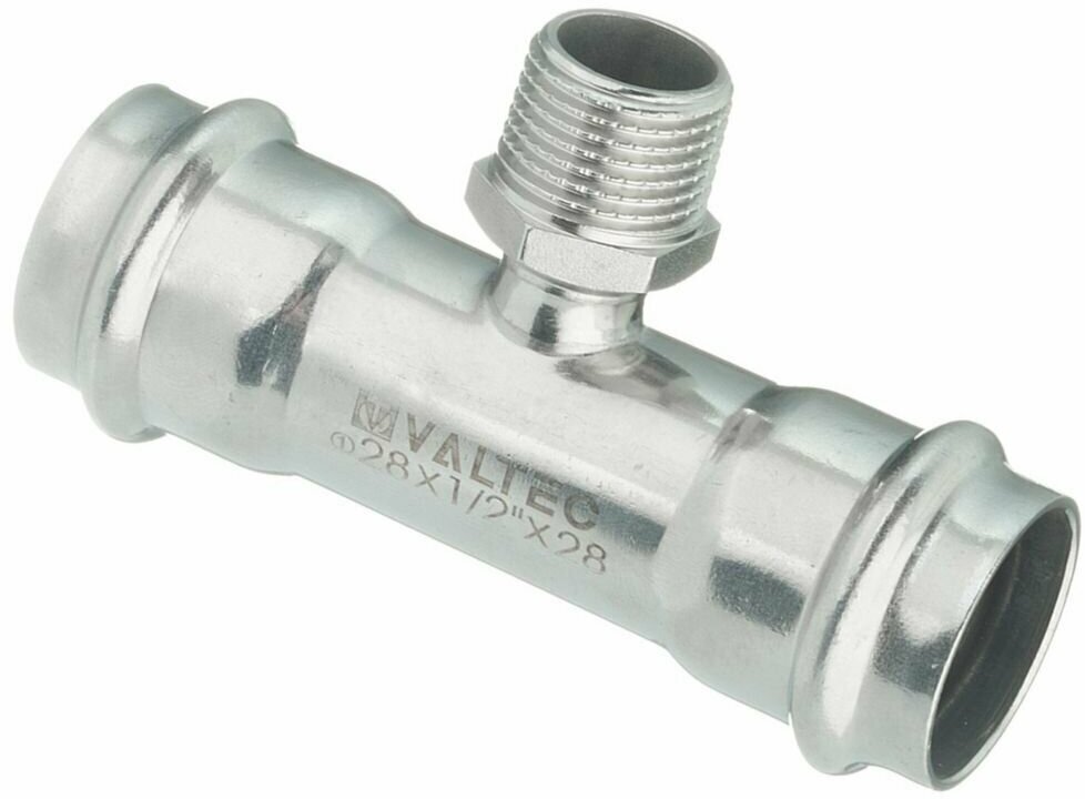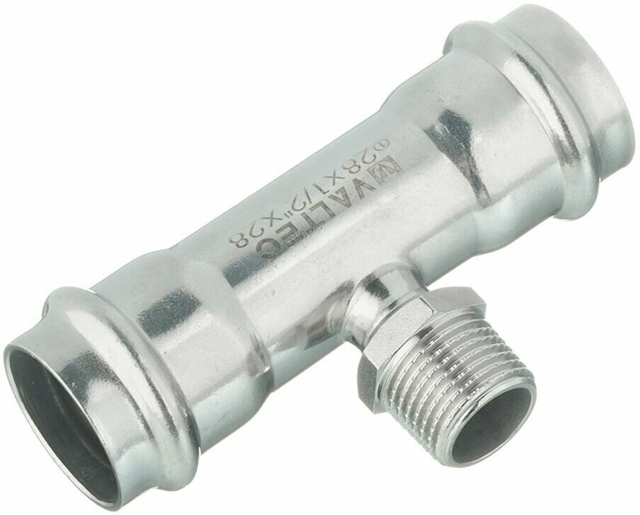 Type: tee, connection type: press, connection: male, pipe diameter: 1/2", material: stainless steel