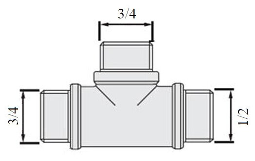 Valtec Fitting threaded tee reducer with external thread 3/4 x 3/4 x 1/2
