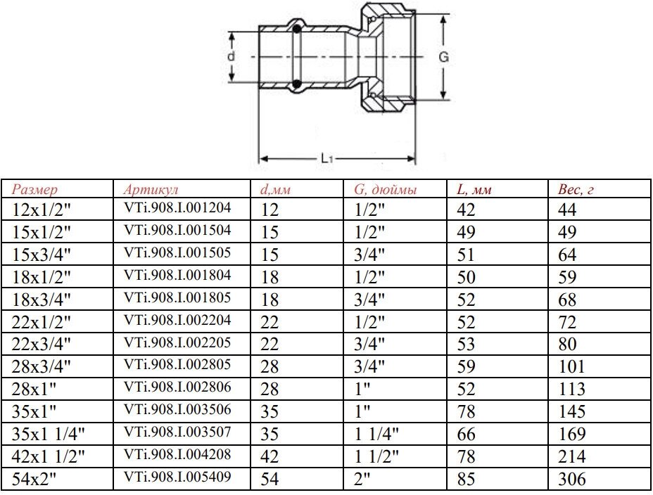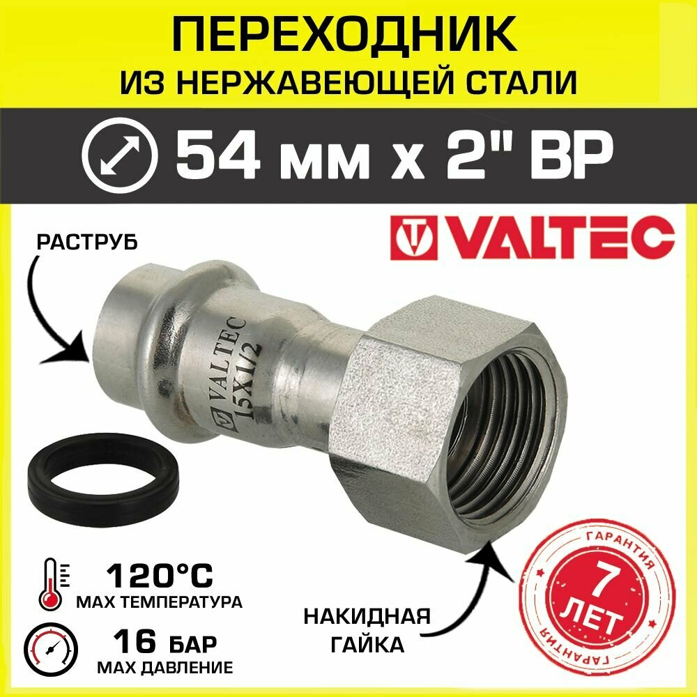 Connector press VALTEC with union nut stainless steel 54x2 VTi.908. I.005409