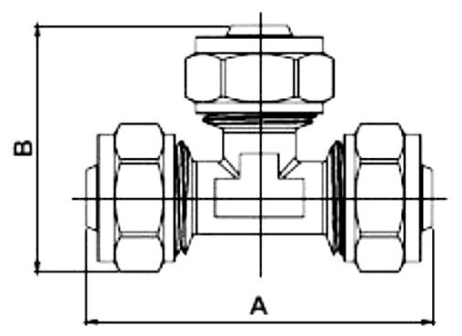 Type: tee, connection type: collet crimp, pipe diameter: 20 mm, material: brass