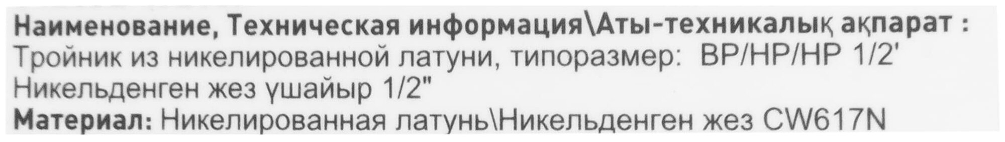 Type: tee, connection type: thread, connection: male / female, material: nickel-plated brass