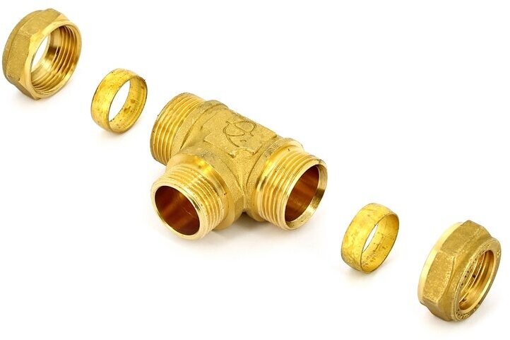 Type: tee, connection type: crimp - thread, connection: male, pipe diameter: 22 mm, material: brass