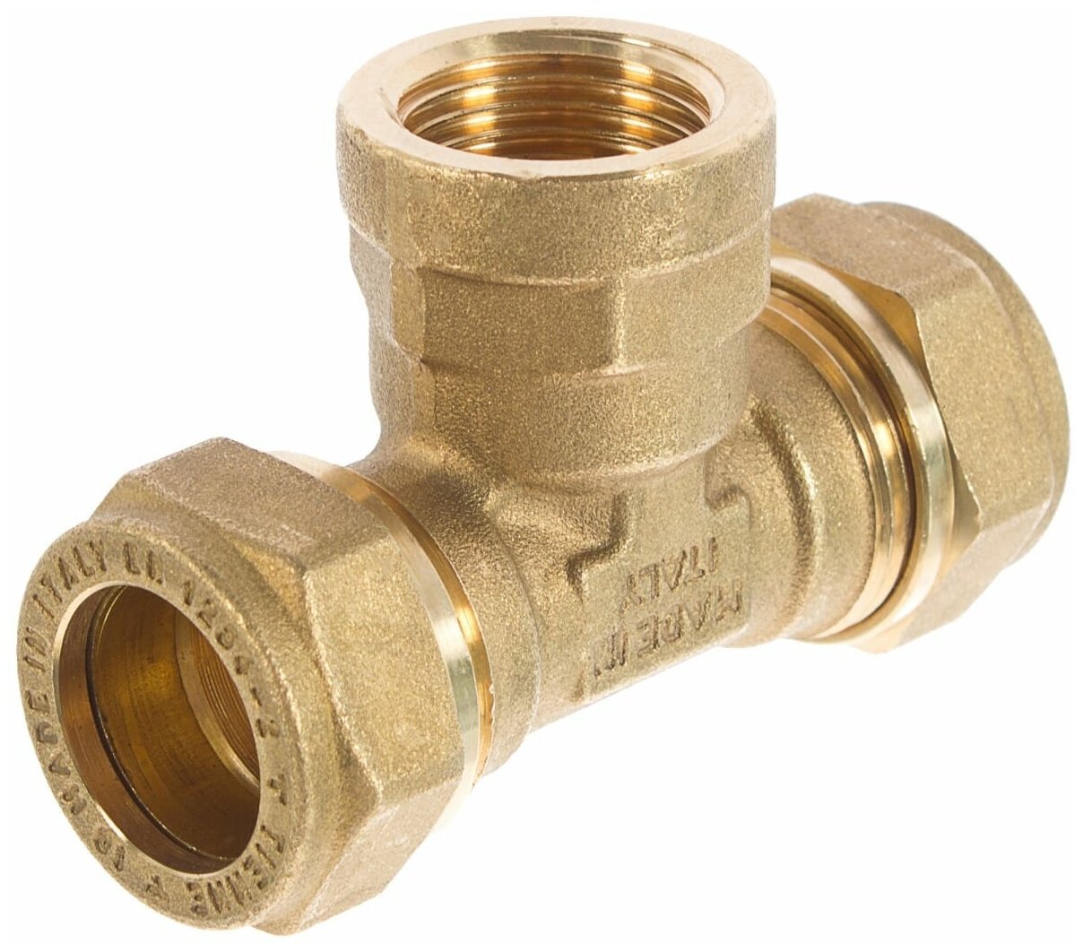 Type: tee, connection type: crimp - thread, connection: female, material: copper