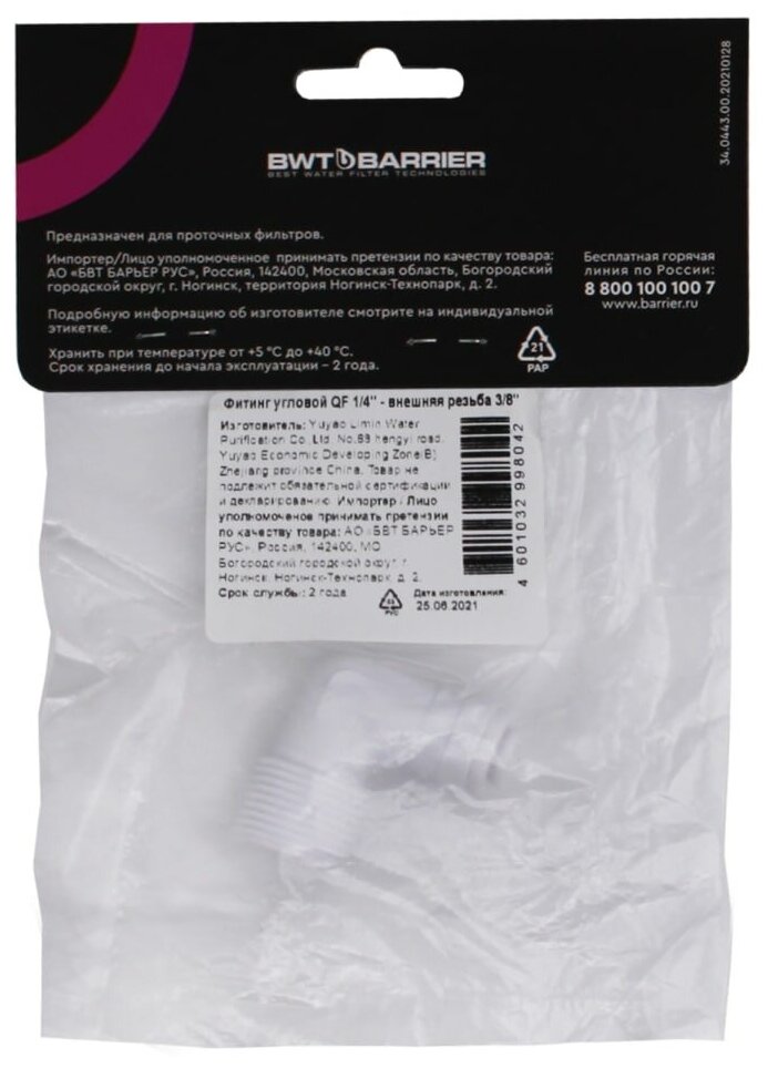Type: elbow fitting, connection type: thread, connection: male, material: plastic