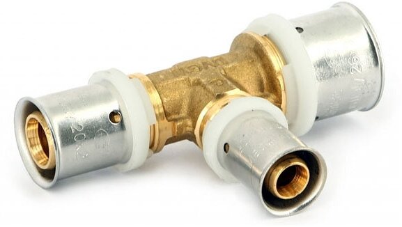 Type: tee, connection type: press, pipe diameter: 26 mm, material: brass