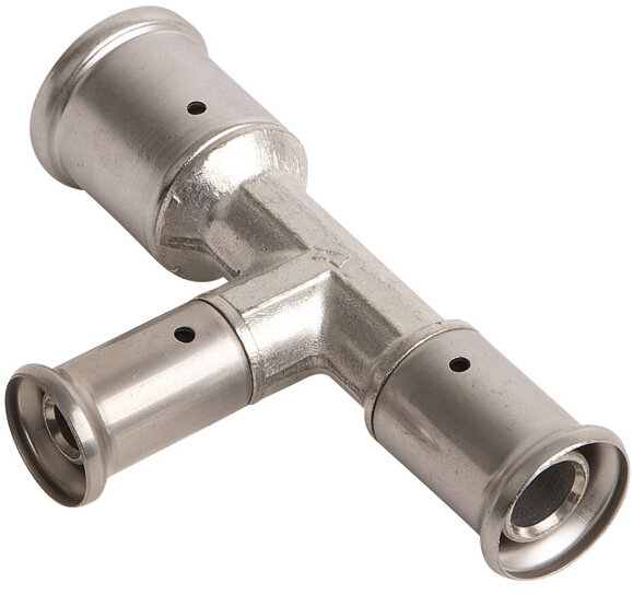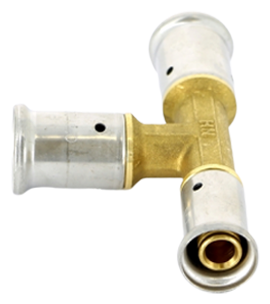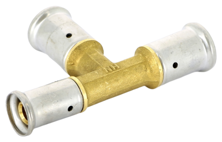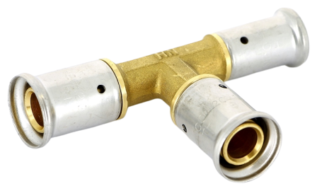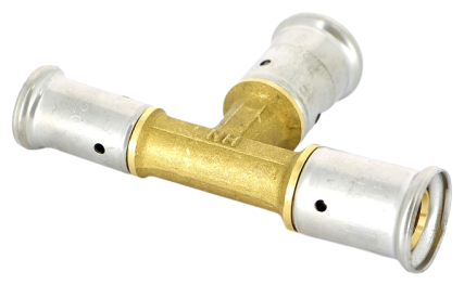 Type: tee, connection type: press, connection: female, pipe diameter: 16 mm, 20 mm, pipe thickness: 2 mm, material: brass, reducer, with seal