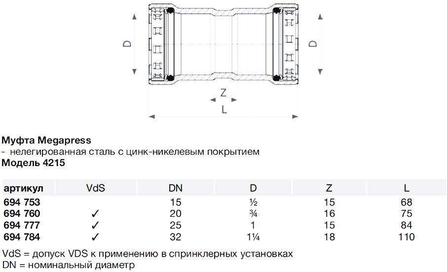 Coupling Viega Megapress SC-Contur 694777 1 DN25 press unalloyed galvanized steel