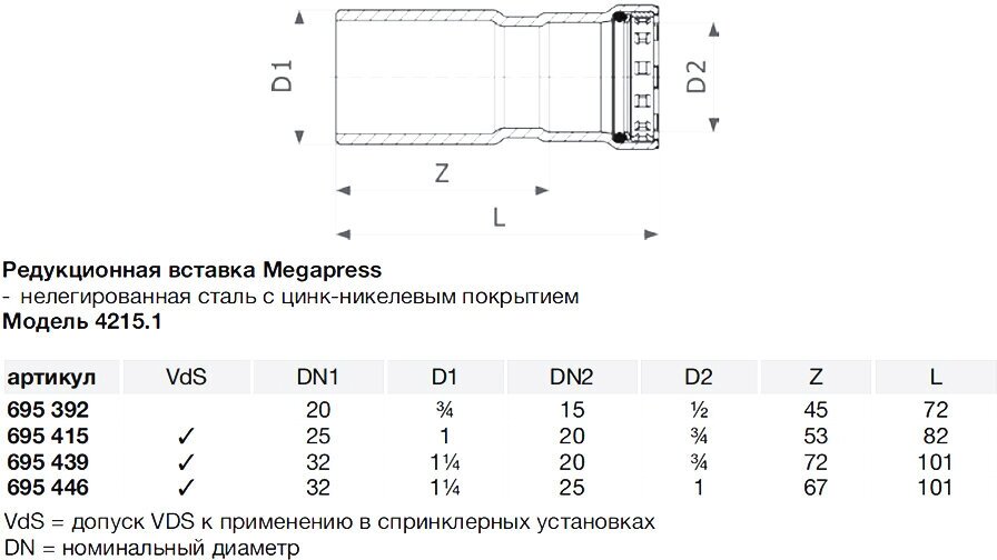 Coupling-insert Viega Megapress SC-Contur 695446 1 1/4 x 1 press unalloyed galvanized steel