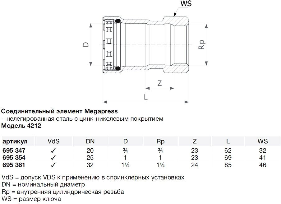 Coupling Viega Megapress SC-Contur 695347 3/4 VRG DN20 press unalloyed steel with zinc-nickel coating