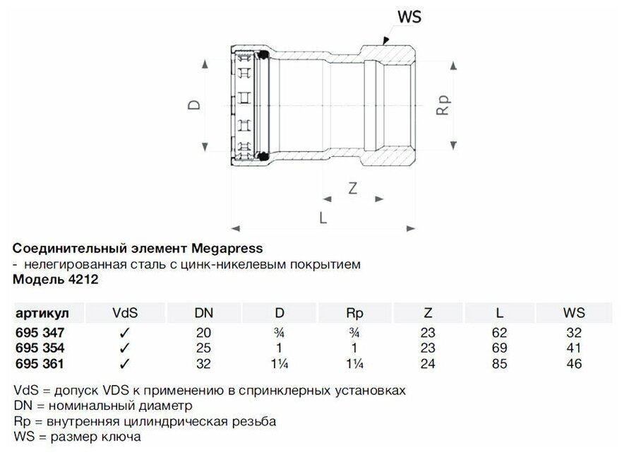 Coupling Viega Megapress SC-Contur 695361 1 1/4 VRG DN32 press unalloyed steel with zinc-nickel coating