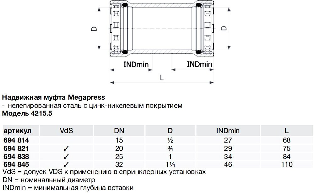 Coupling Viega Megapress SC-Contur 694814 1/2 DN15 press slip unalloyed galvanized steel