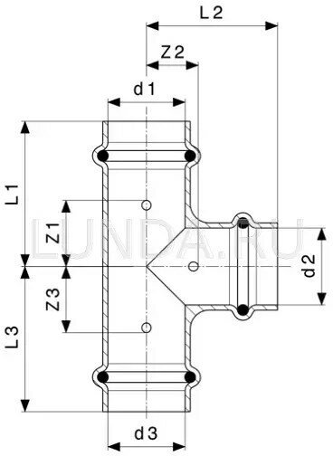 Type: tee, connection type: press, pipe diameter: 28 mm