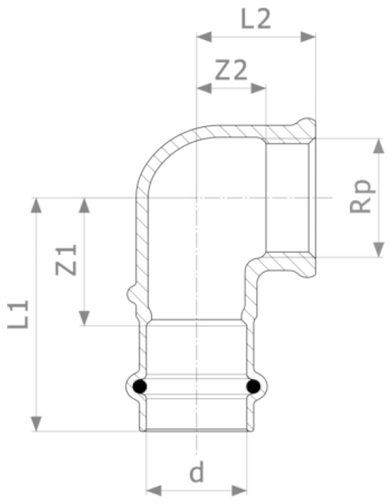 Transition elbow 90 Viega Sanpress with SC-Contur d=18 art. 281 236
