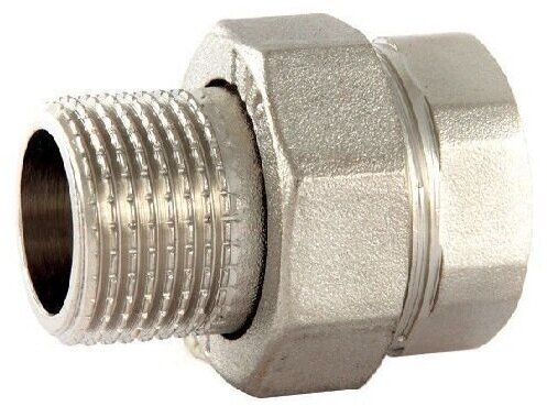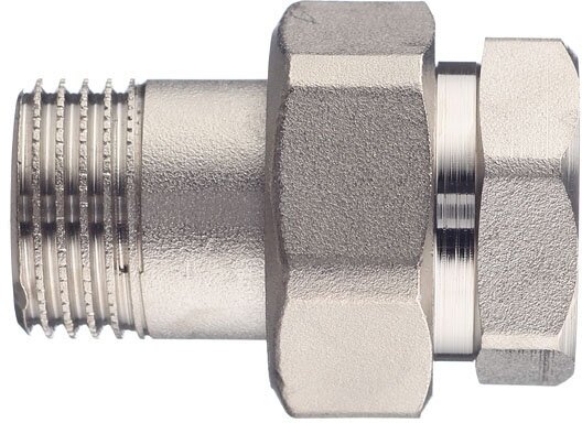 Type: plug connection American, type of connection: thread, connection: male / female, pipe diameter: 1/2", material: nickel-plated brass, split, with union nut, with seal