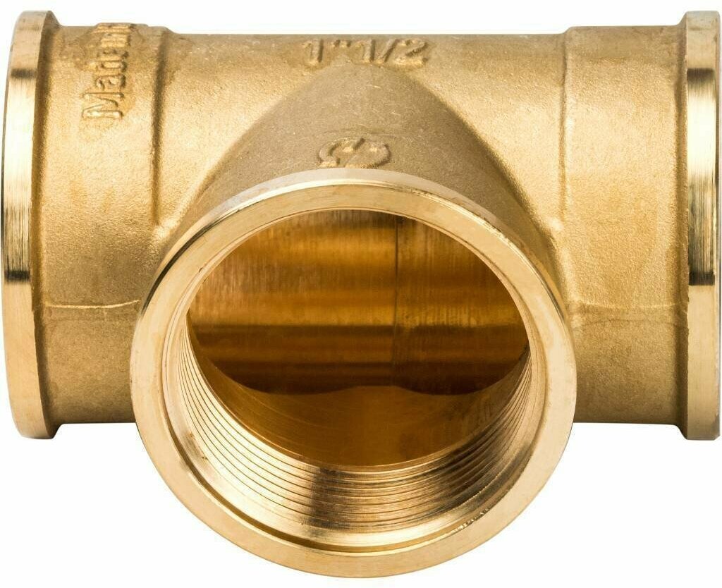 Type: tee, connection type: thread, connection: female, pipe diameter: 1 1/2, material: brass