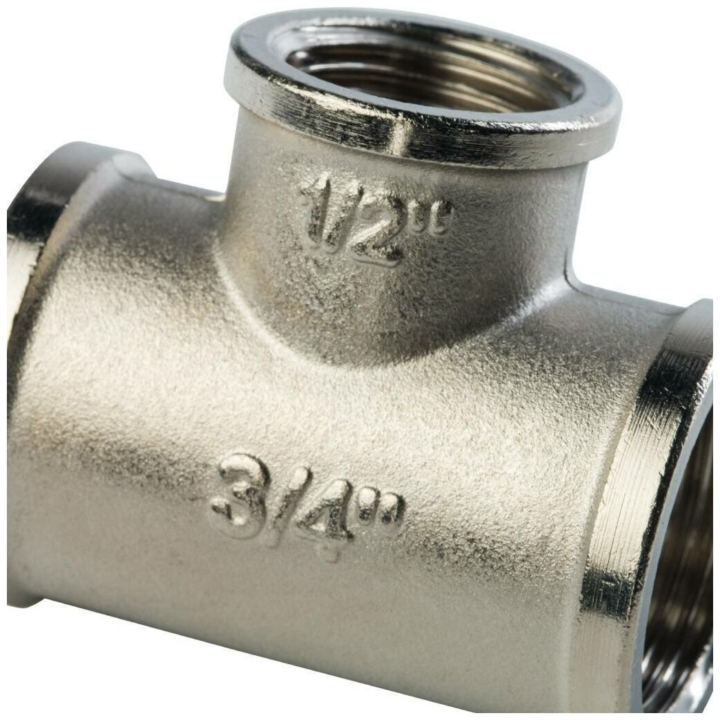 Type: tee, connection type: thread, connection: female, pipe diameter: 1/2, 3/4x1/2x3/4, material: nickel-plated brass, adapter