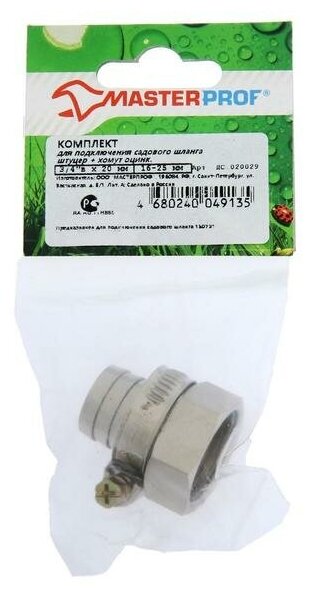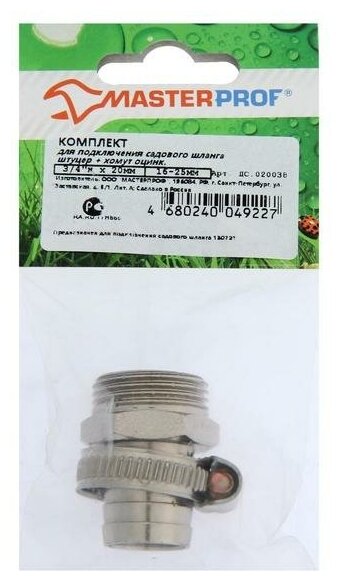 Garden hose connection set MasterProf, 3/4 x 3/4, male thread, nipple + clamp