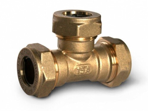 Type: tee, connection type: collet crimp, connection: internal, pipe diameter: 20 mm, material: brass, split, with union nut, with seal