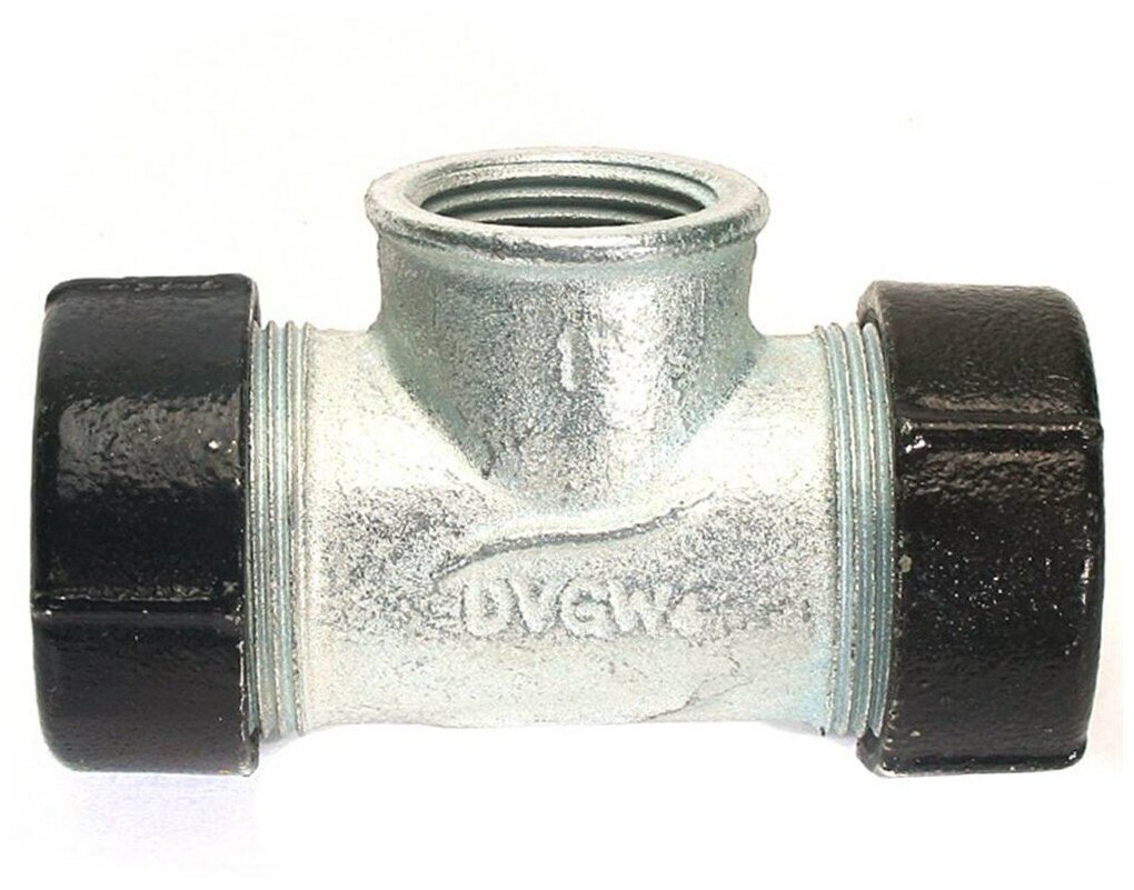Type: tee, connection type: crimp - thread, connection: external / internal, material: galvanized cast iron, transitional, split, with seal, combined