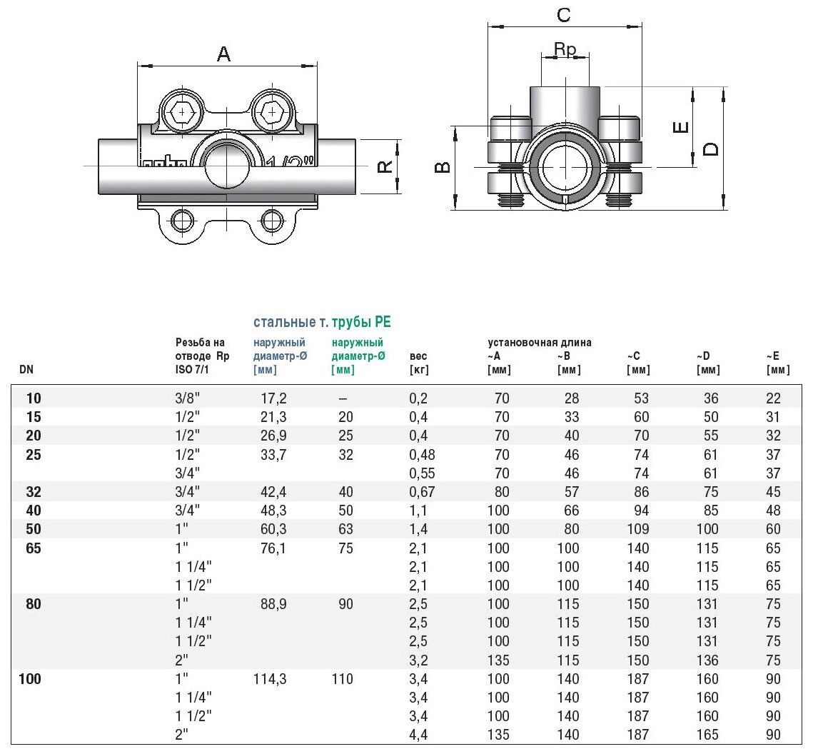 Type: mortise, connection type: thread, connection: internal, pipe diameter: 1", material: galvanized cast iron, transitional, split, with seal