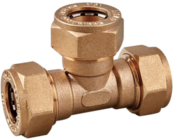 Type: tee, connection type: collet crimp, connection: female, material: brass