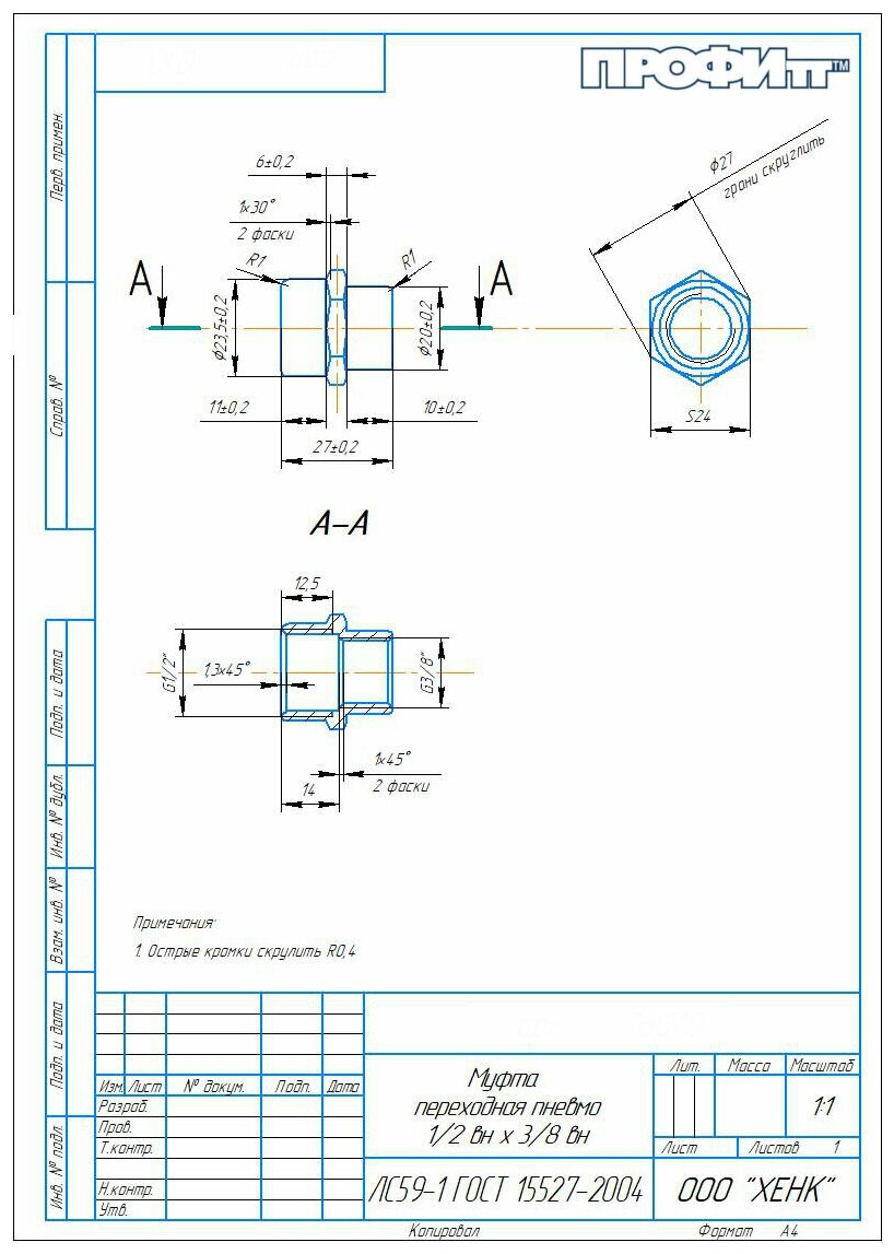 Coupling Profitt brass transitional pneumatic 1/2 BP x 3/8 BP