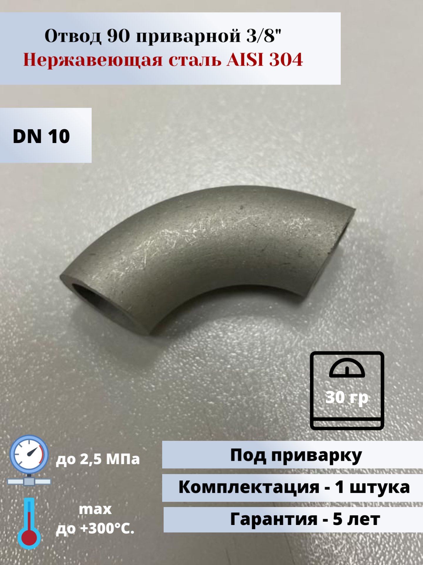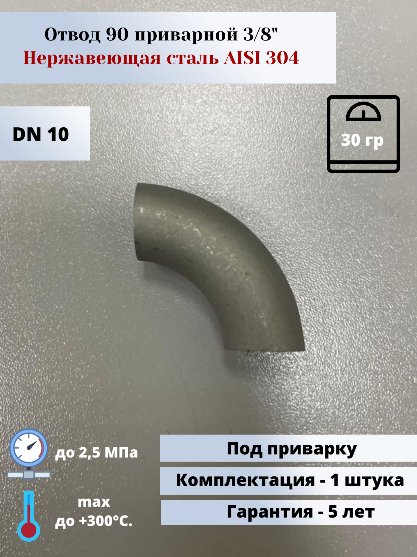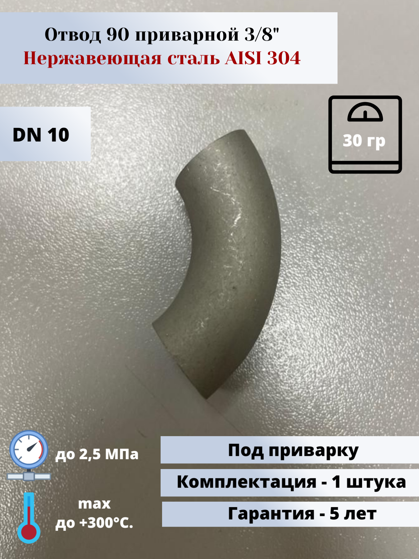 Type: 90° elbow, connection type: welding, connection: not applicable, press fitting profile: not applicable, pipe diameter: 3/8", material: stainless steel