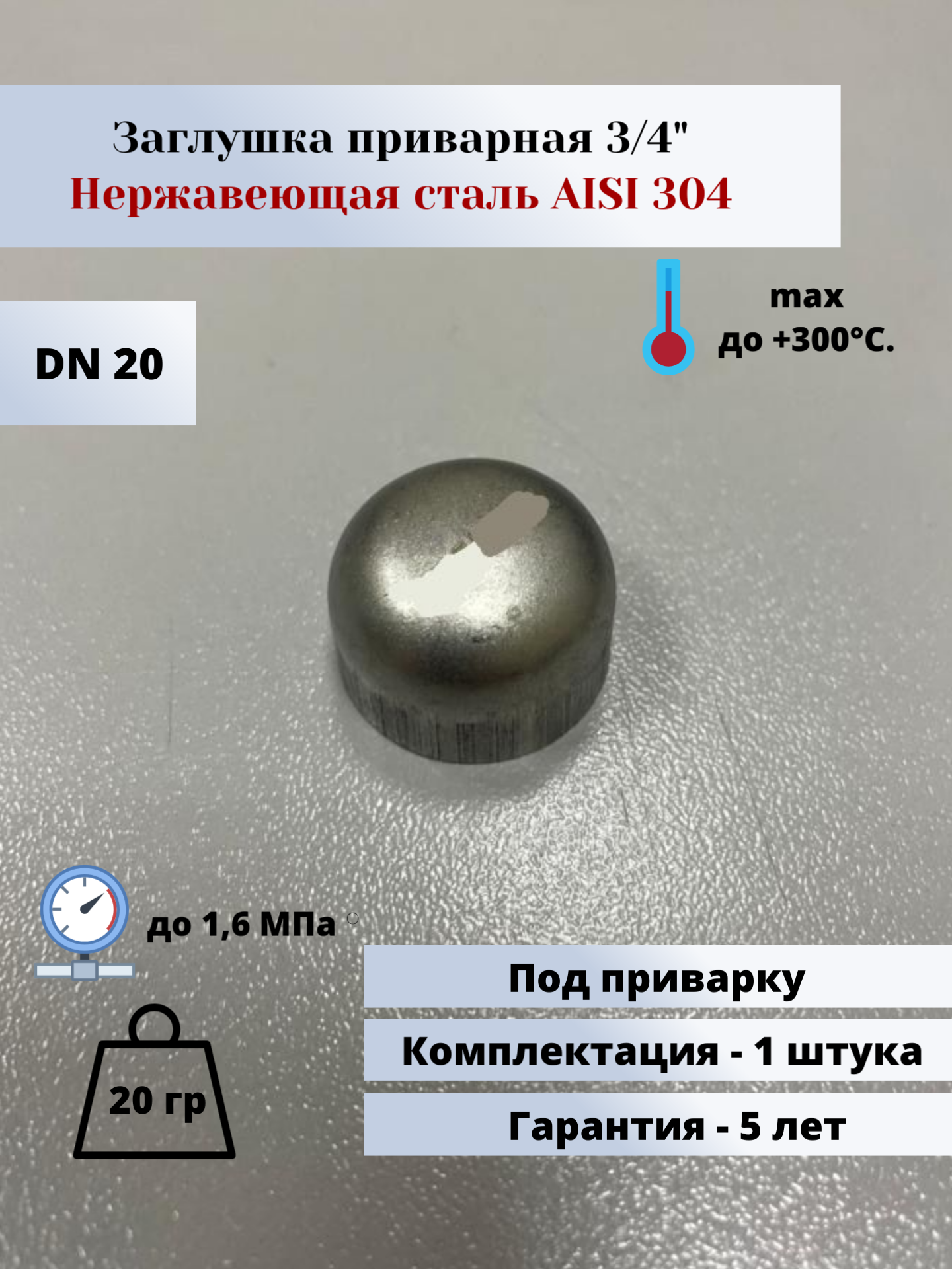 Type: plug, connection type: welding, connection: not applicable, press fitting profile: not applicable, pipe diameter: 3/4", material: stainless steel
