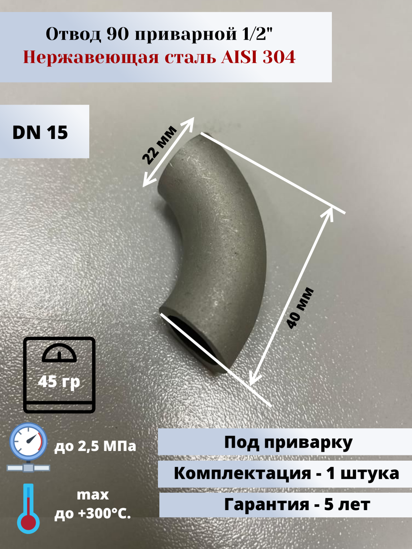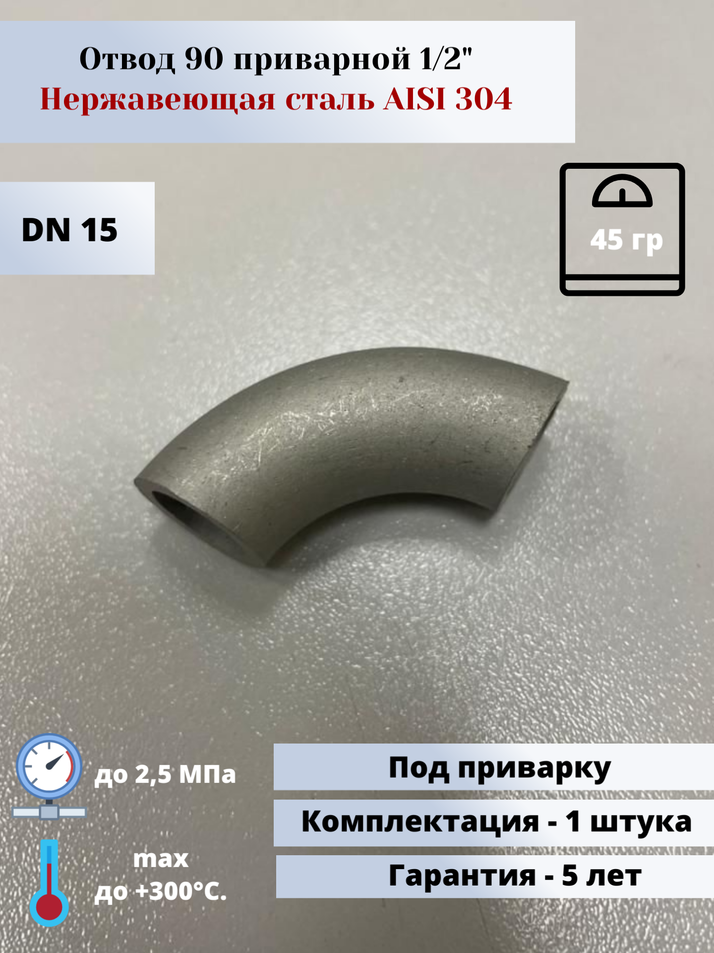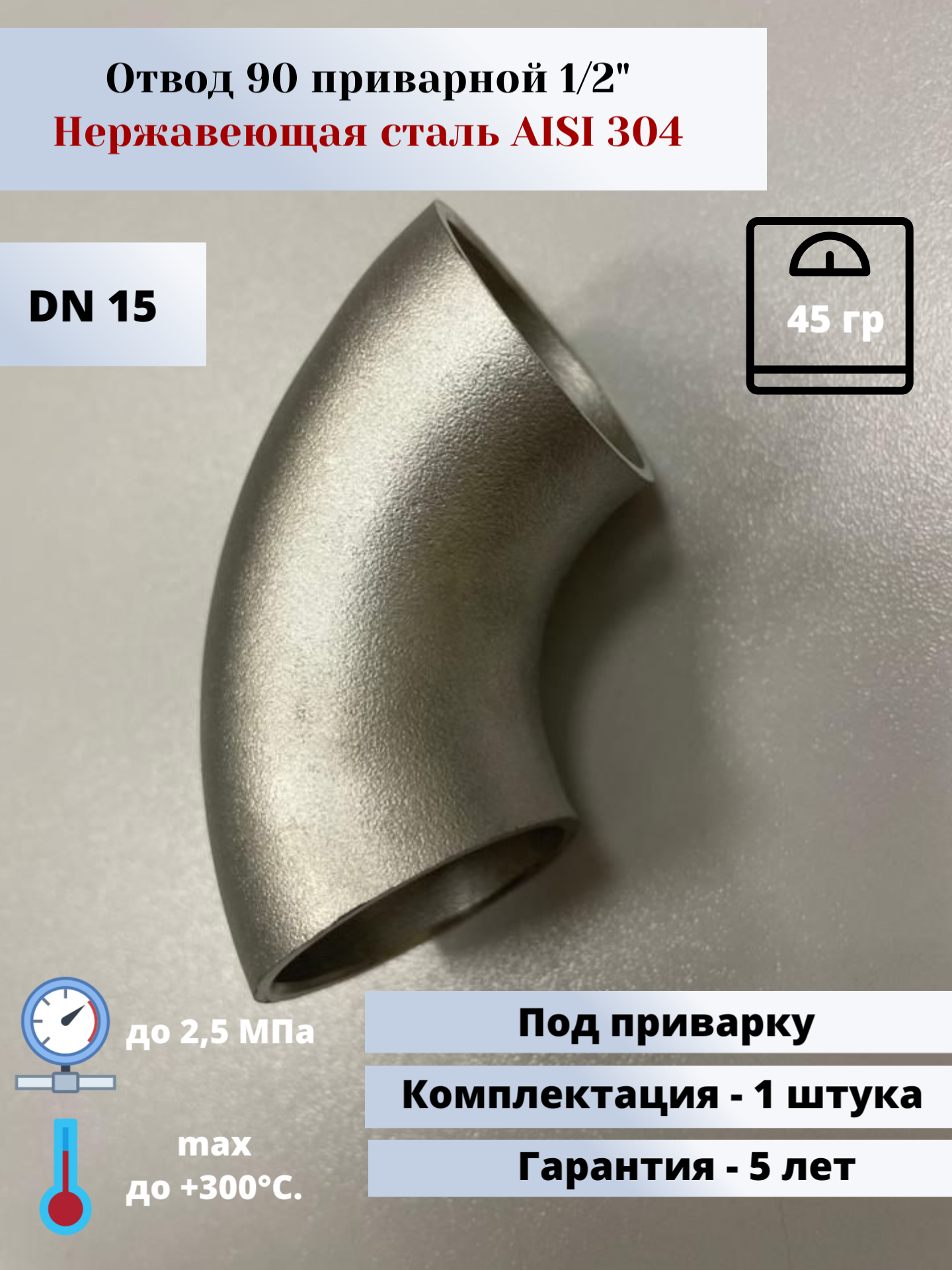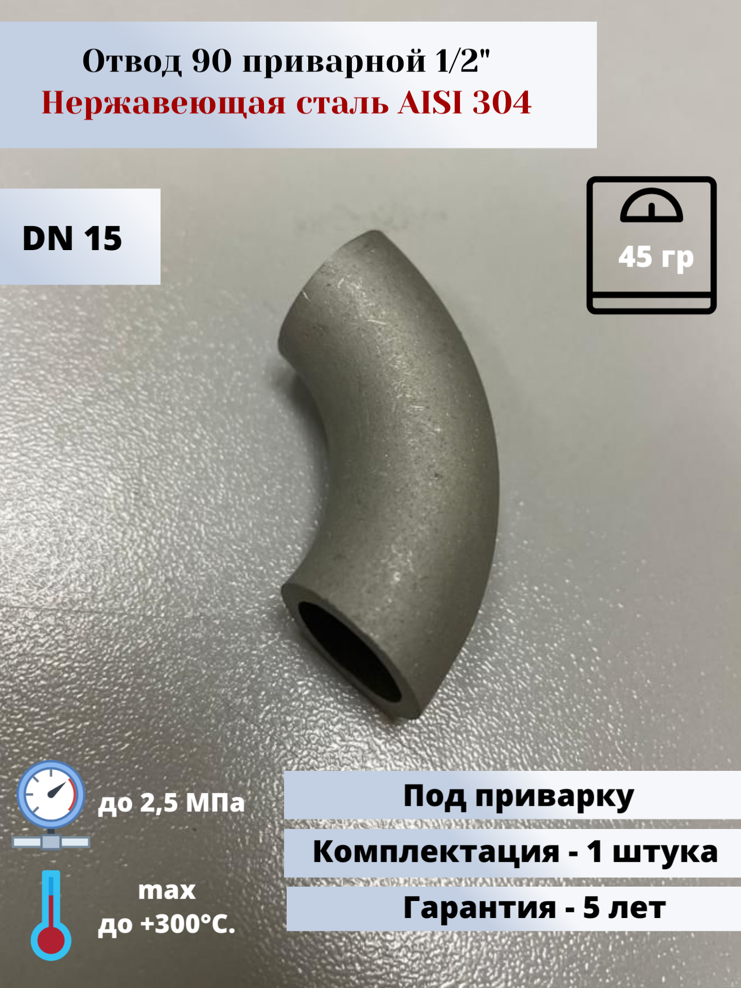 Type: 90° elbow, connection type: welding, connection: not applicable, press fitting profile: not applicable, pipe diameter: 1/2", material: stainless steel