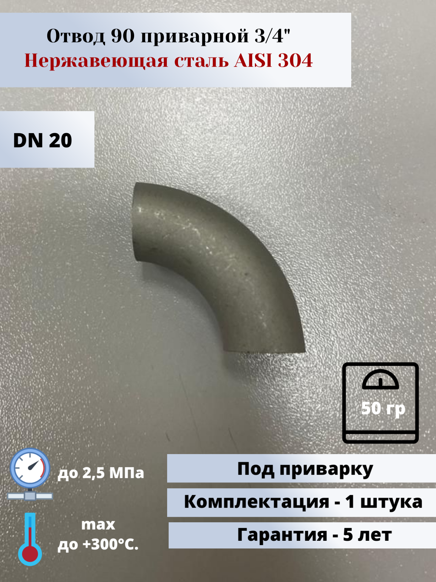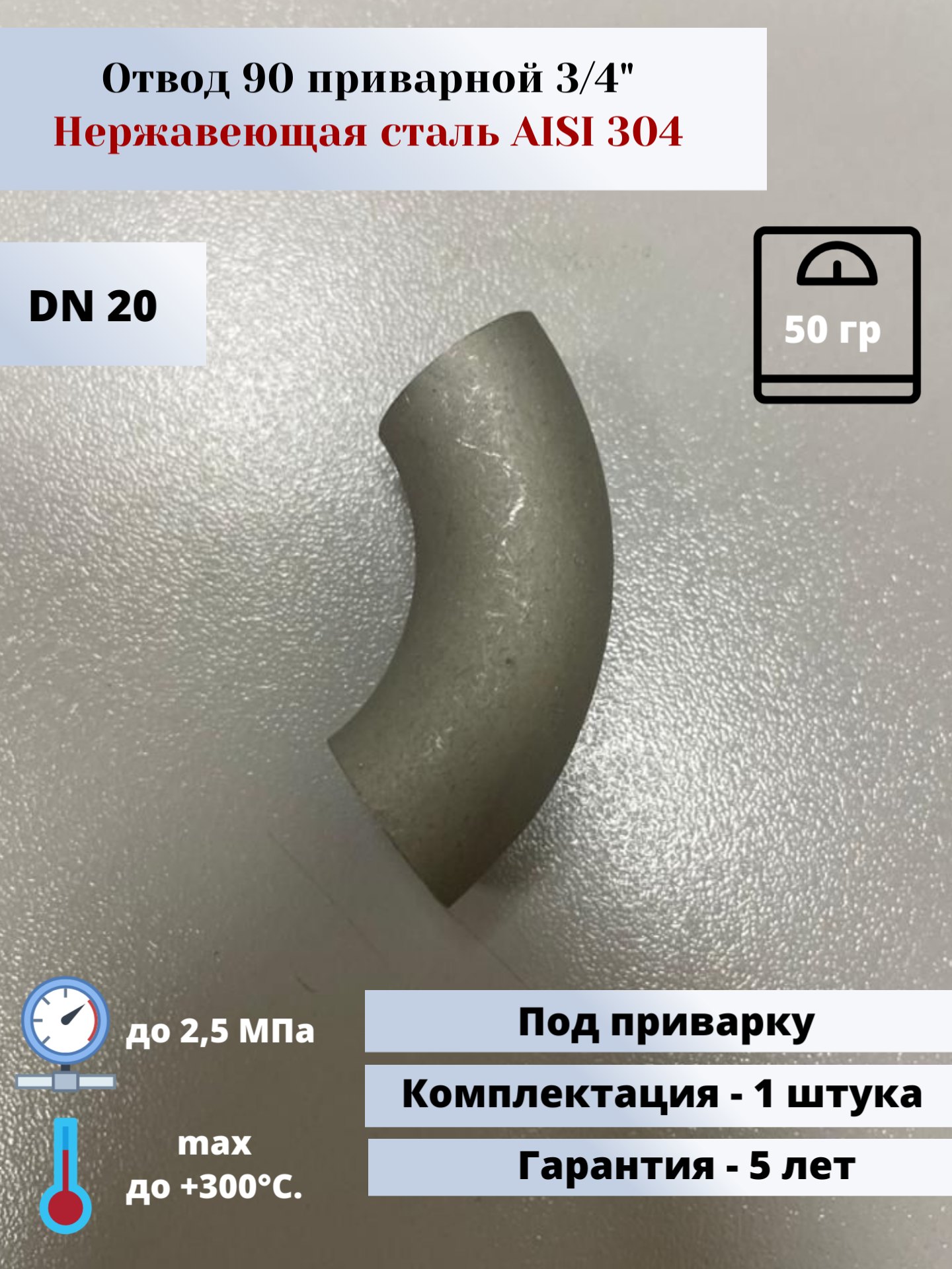Type: 90° elbow, connection type: welding, connection: not applicable, press fitting profile: not applicable, pipe diameter: 3/4", material: stainless steel