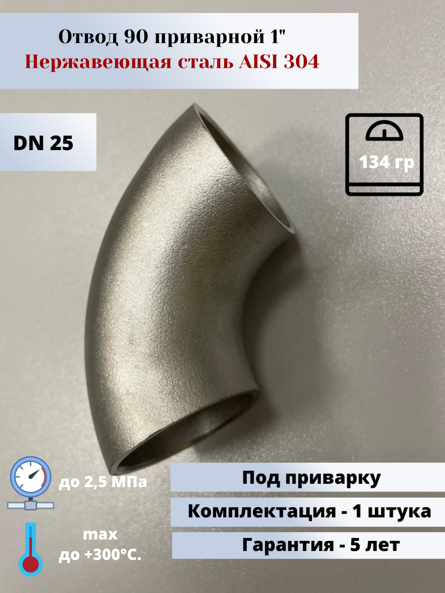 Type: 90° elbow, connection type: welding, connection: not applicable, press fitting profile: not applicable, pipe diameter: 1, material: stainless steel