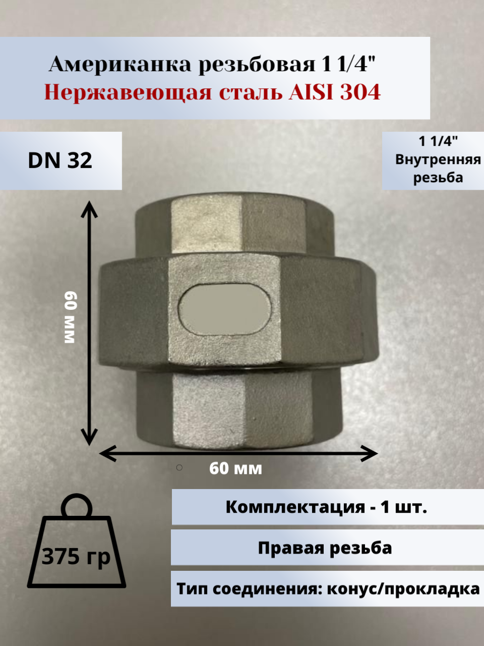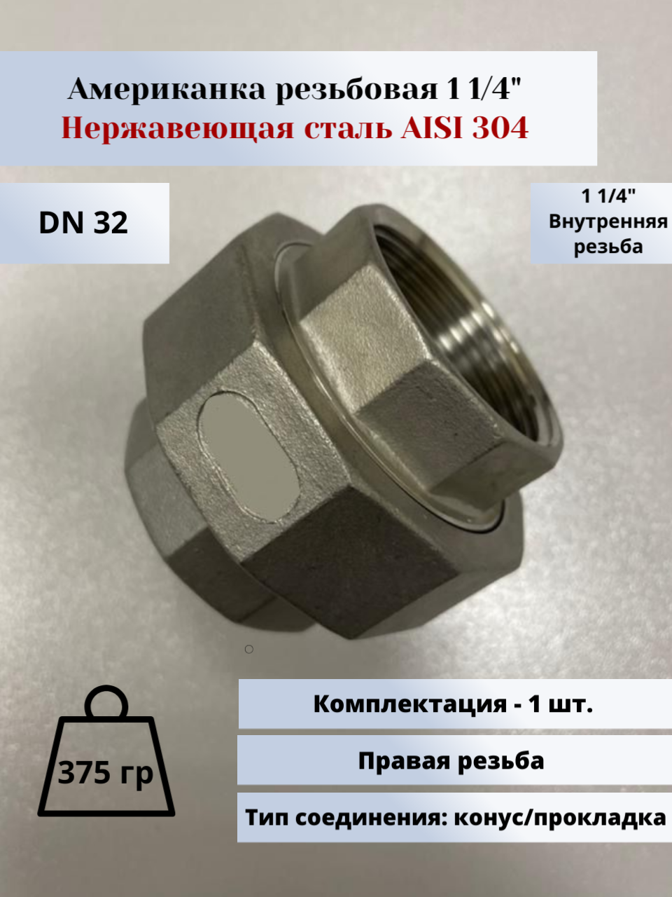 Type: plug connection american, connection type: thread, connection: female, press fitting profile: not applicable, pipe diameter: 1 1/4", material: stainless steel, split, with union nut