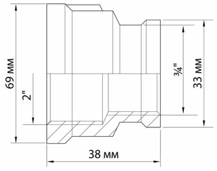 Type: coupling, connection type: thread, connection: female, pipe diameter: 2", 3/4", material: brass, reducer, detachable
