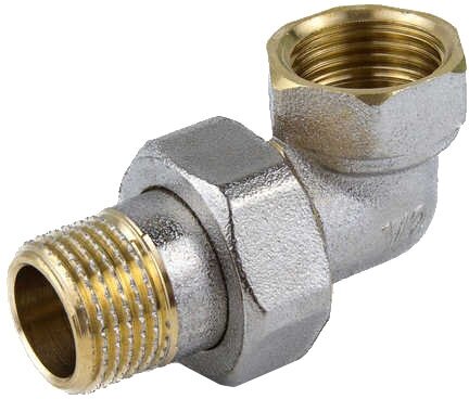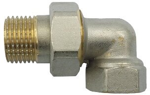 Type: American split elbow, connection type: thread, connection: external / internal, material: nickel-plated brass, split, with union nut