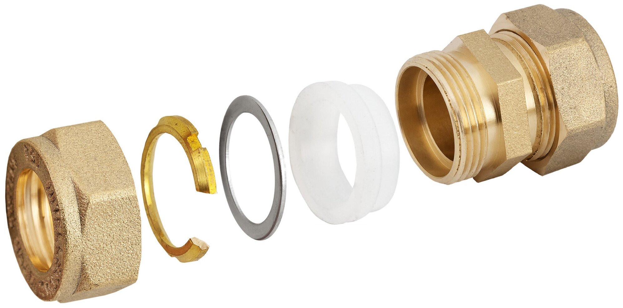 Type: coupling, connection type: collet crimp, connection: internal, pipe diameter: 1/2", 15A, material: brass, detachable, with union nut, with seal
