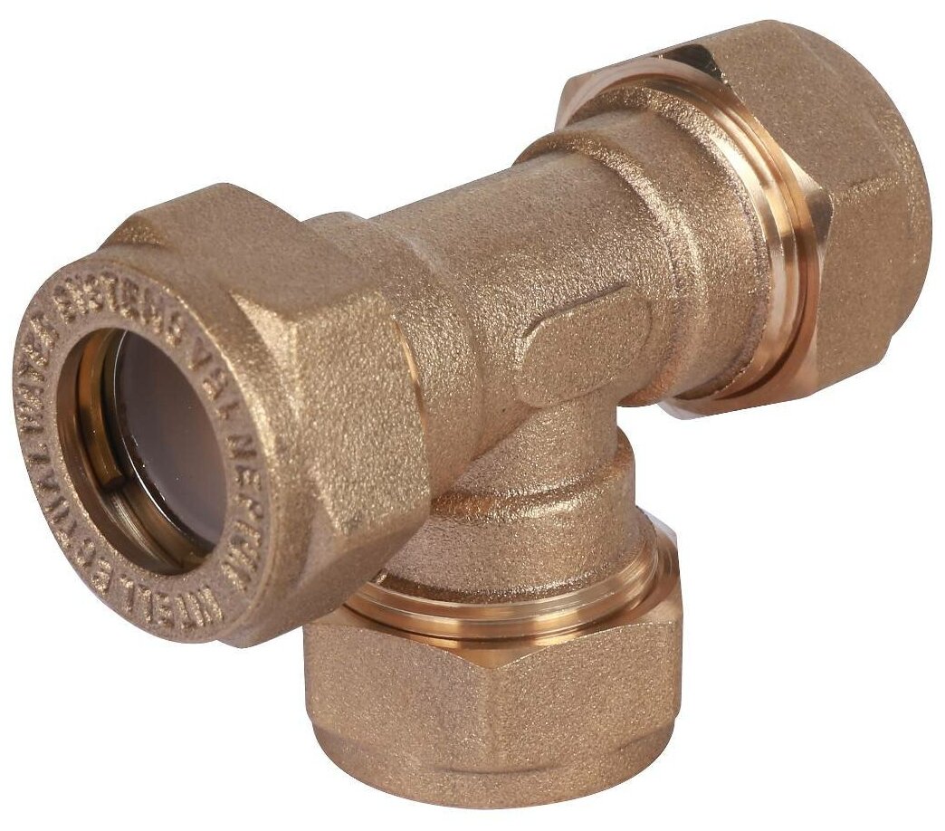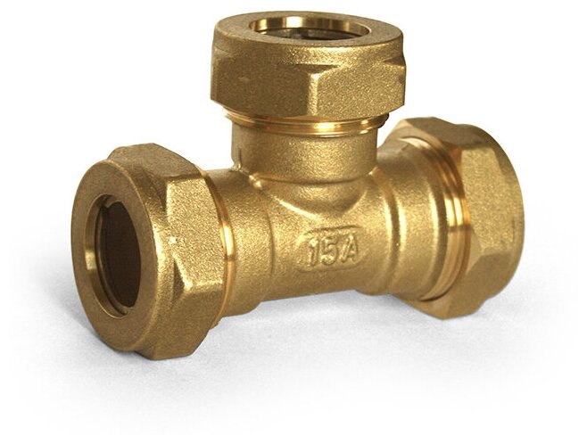 Type: tee, connection type: thread, connection: female, pipe diameter: 1/2", material: brass, split, with union nut, with seal