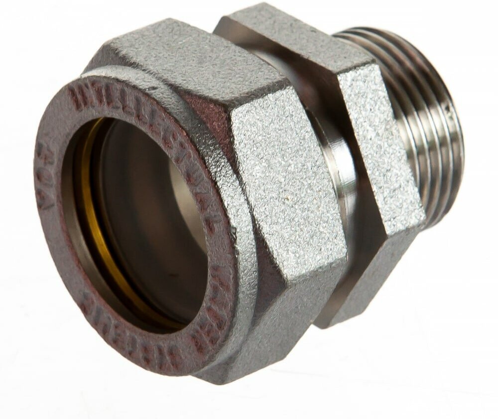 Type: coupling, type of connection: crimp - thread, connection: external, pipe diameter: 20 mm, material: nickel-plated brass, adapter, detachable, with union nut, with seal, combined