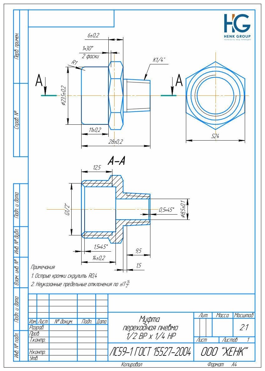 Adapter HG pneumatic 1/4 M x 1/2 M 100 pcs