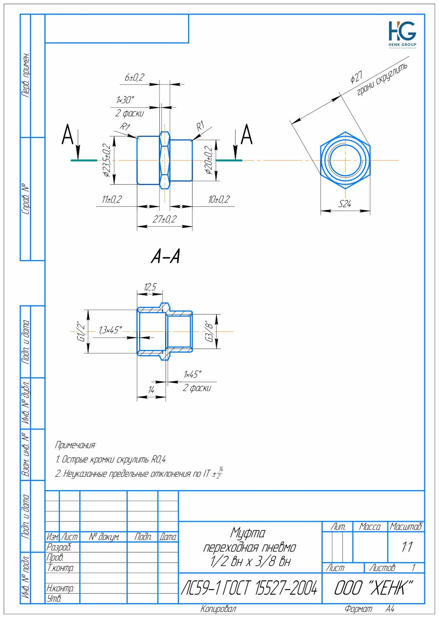 Coupling HG transitional pneumatic 1/2 BP x 3/8 BP 100 pcs