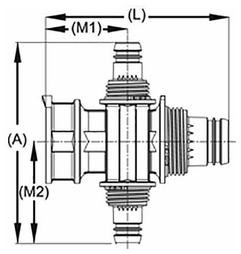 Type: cross, connection type: crimp - thread, connection: external / internal, material: polyphenylsulfone PPSU, reducer, detachable, combined