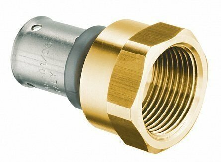Type: coupling, connection type: press-thread, connection: female, press fitting profile: H, TH, U, thread diameter: ½", pipe diameter: 20 mm, pipe thickness: 2.5 mm, material: brass, combined