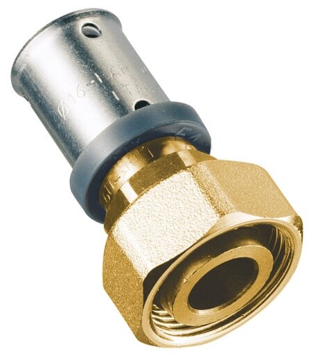 Type: coupling, connection type: press-crimp, press fitting profile: H, TH, U, thread diameter: M24, pipe diameter: 16 mm, pipe thickness: 2 mm, material: brass, with union nut, combined
