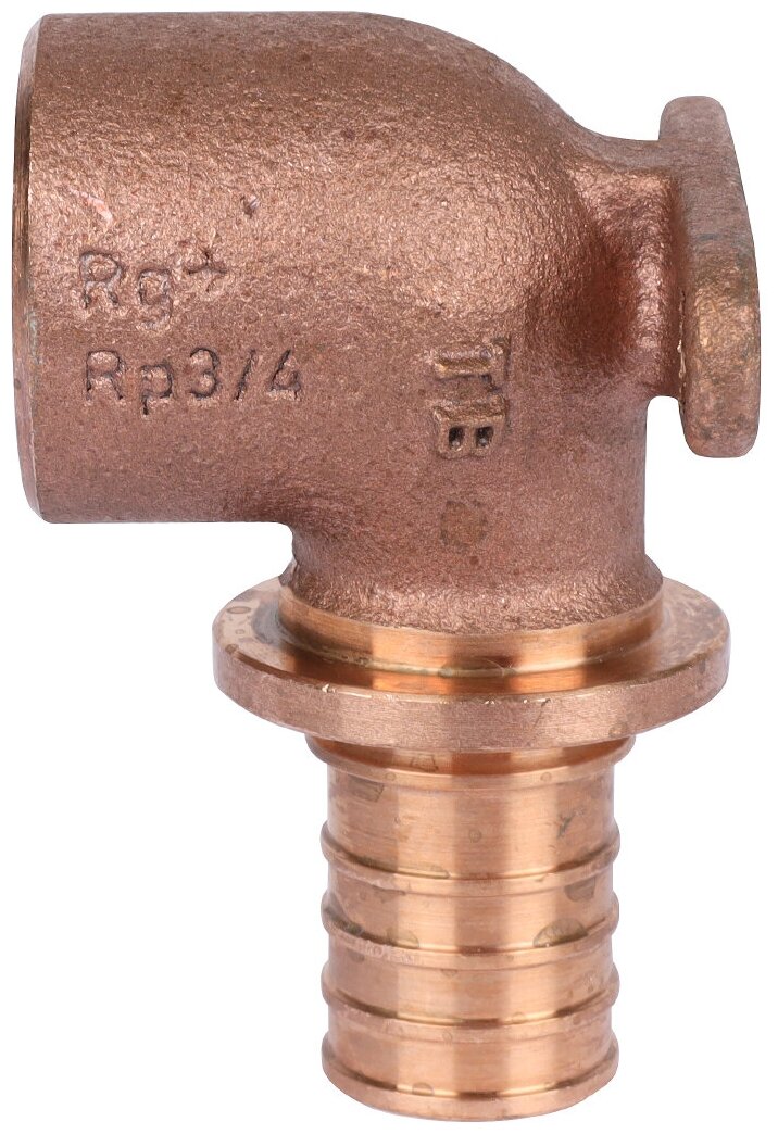 Type: elbow 90°, connection type: axial - thread, connection: male / female, thread diameter: ¾", pipe diameter: 25 mm, material: bronze, with fastening, combined