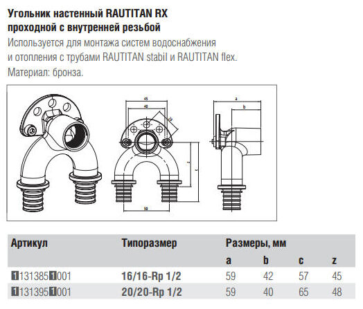 Water socket for mounting units REHAU RX - 16 x 1/2 bronze, for pipes of the RAUTITAN series