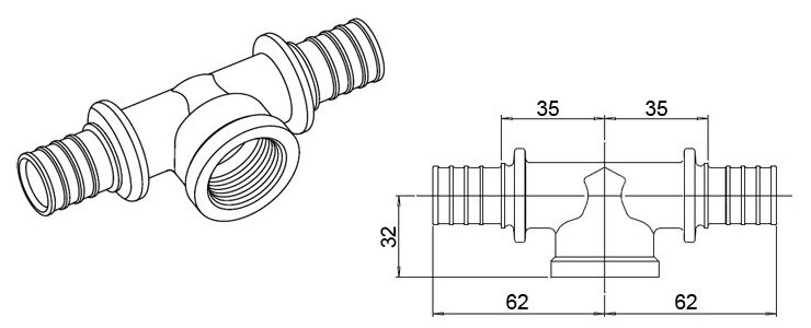 Tee REHAU RAUTITAN PX with internal thread on the side passage 32-3/4-32
