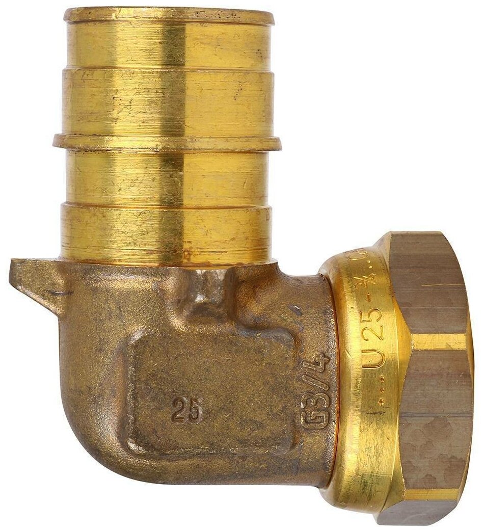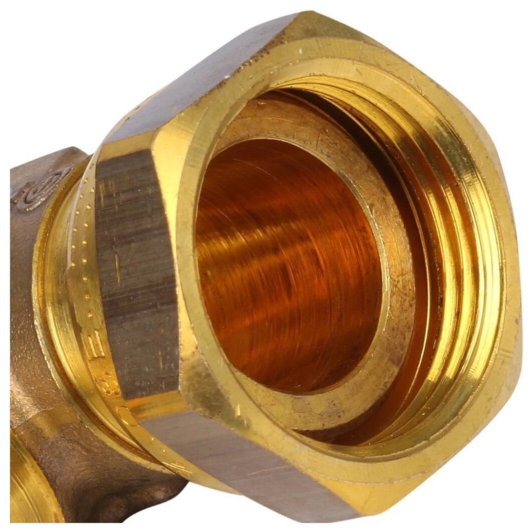 Type: elbow 90°, connection type: axial - crimp, connection: male / female, thread diameter: ¾", material: brass, with union nut, with seal, combined