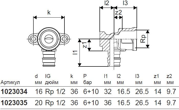 Water socket Uponor Smart Aqua Q&E RP 16-1/2ВР L=43mm