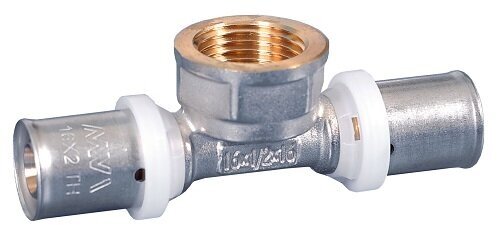 Type: tee, connection type: press-thread, connection: female, thread diameter: ½, pipe diameter: 16 mm, material: brass, combined