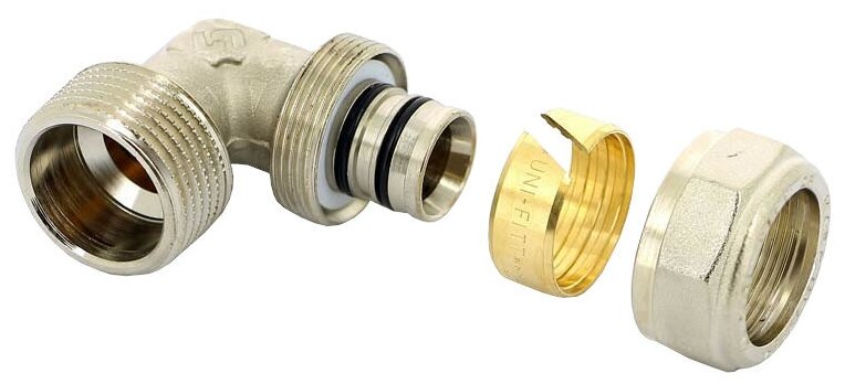 Type: elbow 90°, connection type: crimp-thread, connection: male, thread diameter: 1", pipe diameter: 26 mm, pipe thickness: 3 mm, material: nickel-plated brass, detachable, with union nut, with seal, combined