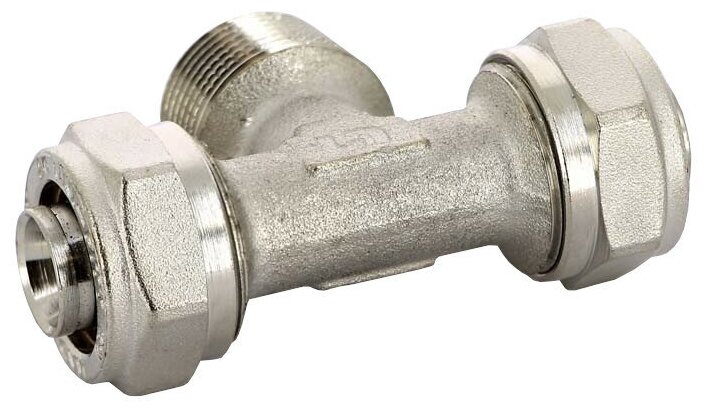 Type: tee, connection type: crimp - thread, connection: male, thread diameter: ½, pipe diameter: 20 mm, pipe thickness: 2 mm, material: brass, split, with union nut, with seal, combined